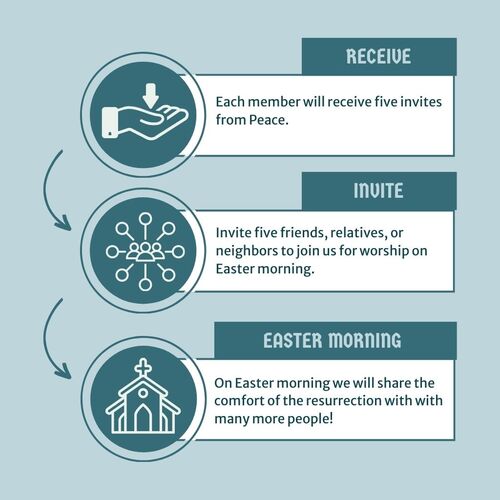 Enter the contact information of your friend, relative, associate or neighbor below and Peace will send them an invitation to Easter morning worship. Thank you for helping to share the hope of the resurrection with more people!